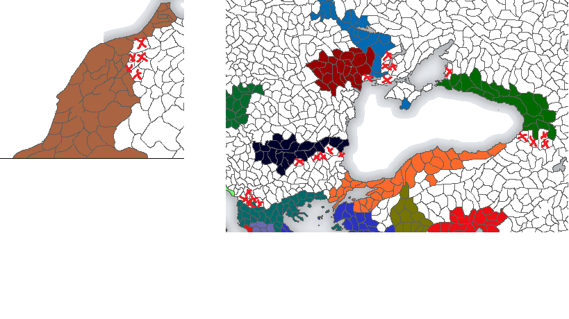 All the countries on the map are players pick an empty spot in a single provonce and start from there.